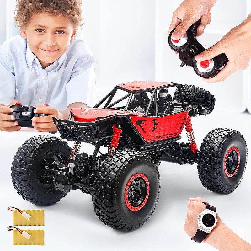 ماشین کنترلی آفرودی MZ از همان لحظهٔ اول حسابی جلب توجه میکند؛ ترکیبی از ظاهر قدرتمند، شاسی فلزی و تایرهای بزرگ که کاملاً حس یک کراولر واقعی را منتقل میکند. چه با ریموت بازی کنی و چه با کنترل مچی، تجربهای پرهیجان و متفاوت در اختیارت میگذارد؛ طوری که انگار یک غول کوچک آفرودی زیر فرمانت داری.