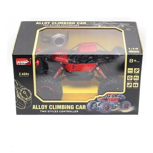 طراحی ماشین کنترلی آفرودی MZ مدل دقیقاً بر اساس کراولرهای حرفهای ساخته شده؛ همانهایی که روی صخره و شیبهای سخت حرکت میکنند. ترکیب پوستهٔ آلیاژی و بدنهٔ PVC دوام زیادی ایجاد کرده و رولکیج فلزی بالای کابین، حس حرفهایتری به آن میدهد. رنگبندی مشکی-قرمز جلوهای اسپرت ساخته و باعث میشود خودرو در همان نگاه اول قدرتمند به نظر برسد.